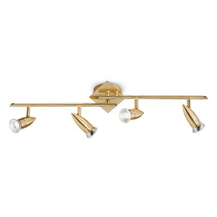 Metallkörper mit Satin-Messing-Finish. Dieser Strahler ist verstellbar, mit der Drehung des Schirms und mit neigbarem Gelenk.