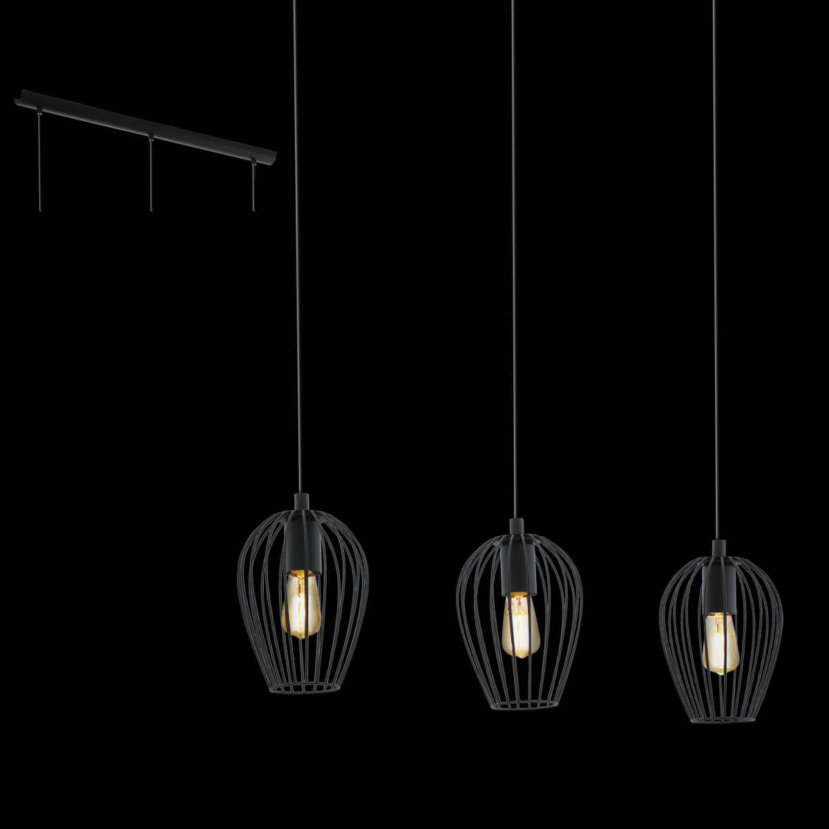 Eglo VINTAGE 49478 Pendelleuchte NEWTOWN schwarz E27 3x60W