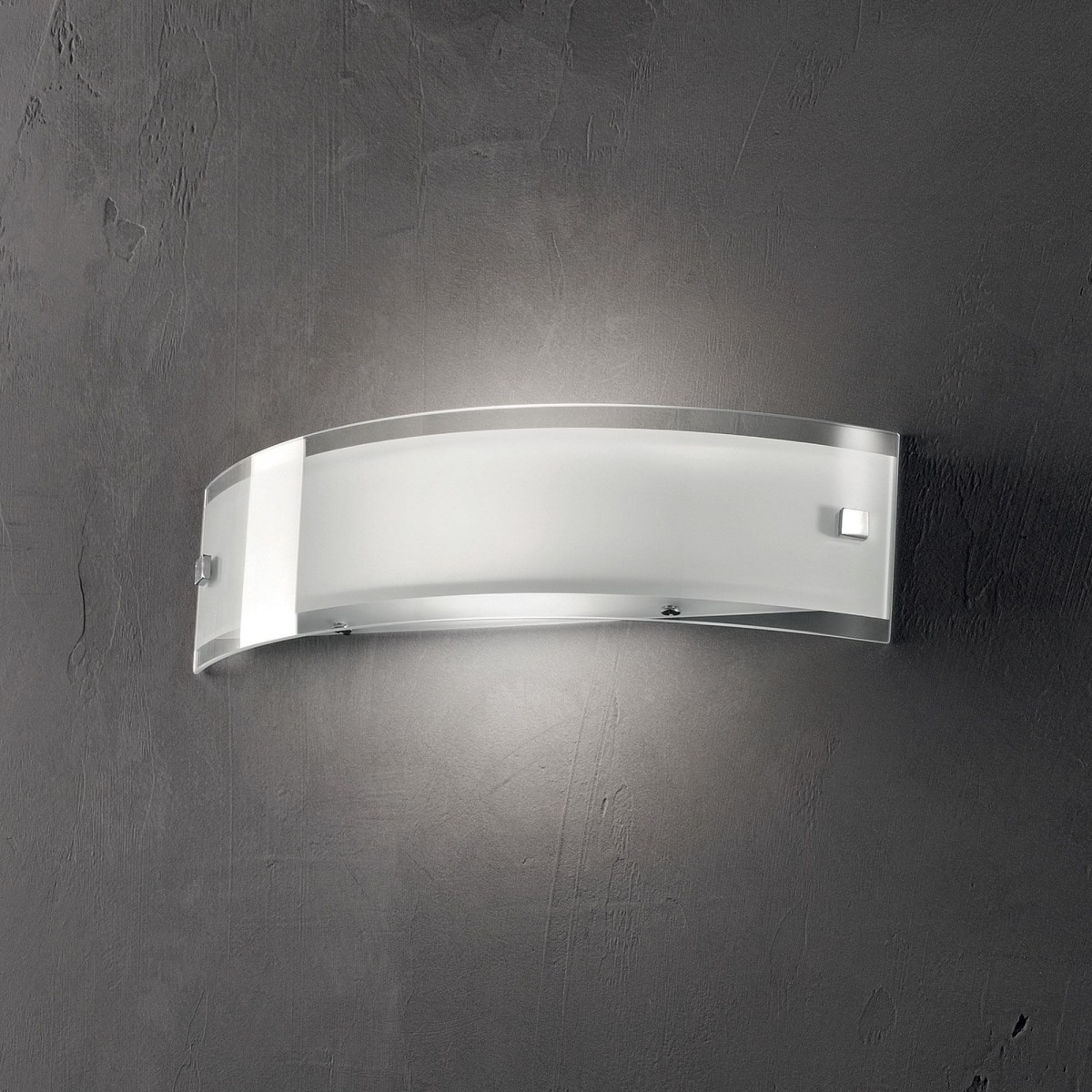 Diffusor mit Dreifachverglasung. Zweiseitig transparent geätzte Gläser und Front transparent bedruckt mit weißer Dekoration. Die Schrauben sind in verchromtem Metall verglast. Die Leuchte macht einen…