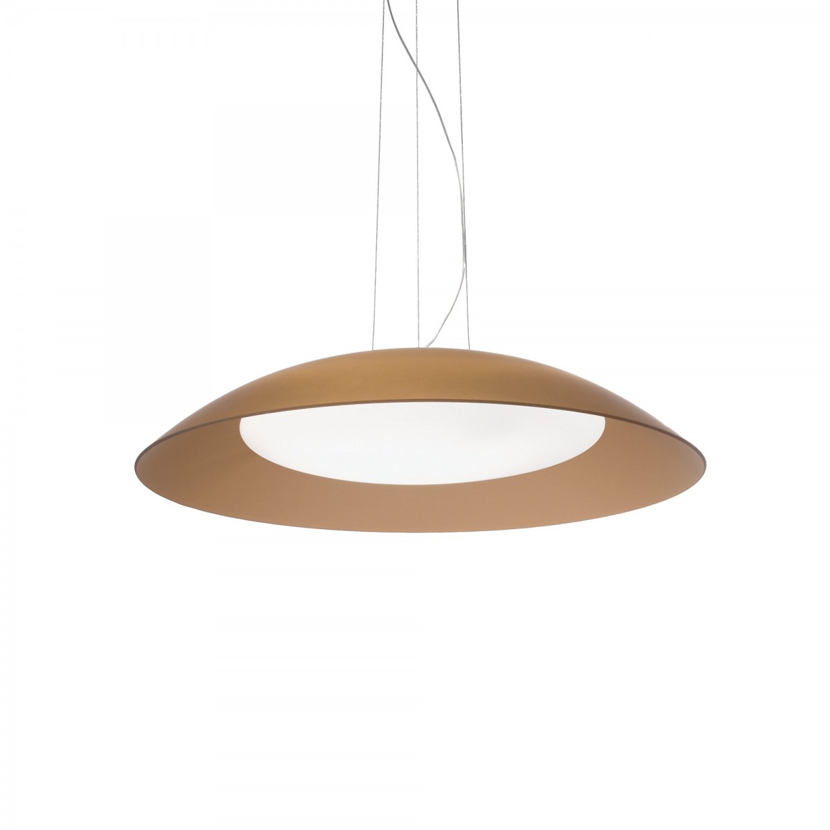 Die moderne und interessante Leuchte besteht aus einem robusten Metallkörper und einem Schirm aus mundgeblasenem Glas. Die Innenseite des Schirms ist milchig und die Außenseite braun. Möglichkeit,…