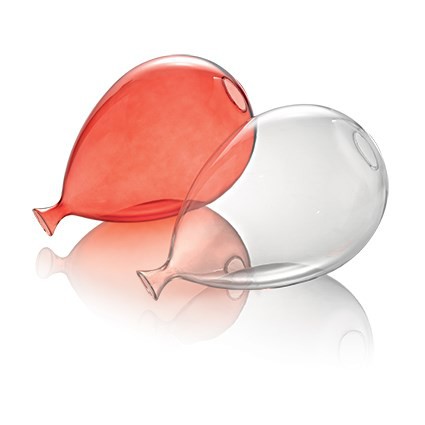 Eine ungewöhnliche, aber fröhliche Designlampe. Das massive Metallgestell in verchromter oder weißer Ausführung wird durch abgehängte, mundgeblasene Glasschirme in klar, weiß oder mehrfarbig ergänzt.