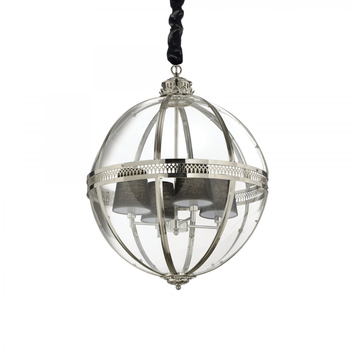 Wenn Sie ein Liebhaber einzigartiger und neuartiger Dinge sind und Licht suchen, dann ist die Ideal Lux I156330 World die richtige Wahl für Sie. Diese abgehängte Deckenleuchte wird nicht so schnell alltäglich werden und besonders in orientalisch anmutenden Interieurs auffallen. Der Kronleuchter eignet sich besonders gut über dem Küchentisch, im Wohnzimmer oder im Flur – kurz gesagt in Räumen, in denen er als zentrale Beleuchtung und als auffälliges Dekorationselement dienen kann. Das Lampengestell ist aus Metall in polierter Farbe, der Diffusor aus Glas. Die hängende Kette ist mit Stoff überzogen.