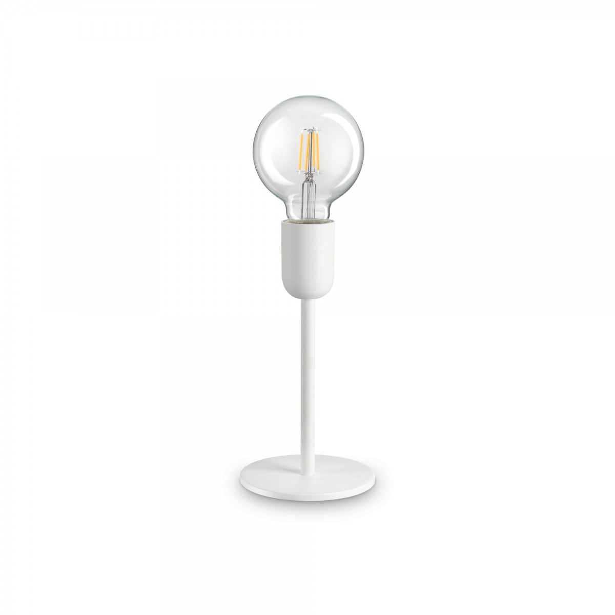 Design-Tischleuchte Ideal Lux 232508 Mikrofon eignet sich besonders für moderne oder rustikale Innenräume. Die Lampe hat sehr einfache, aber elegante Formen. Sein Metallkörper ist weiß, das Stromkabel mit Schalter ist mit Stoff überzogen.