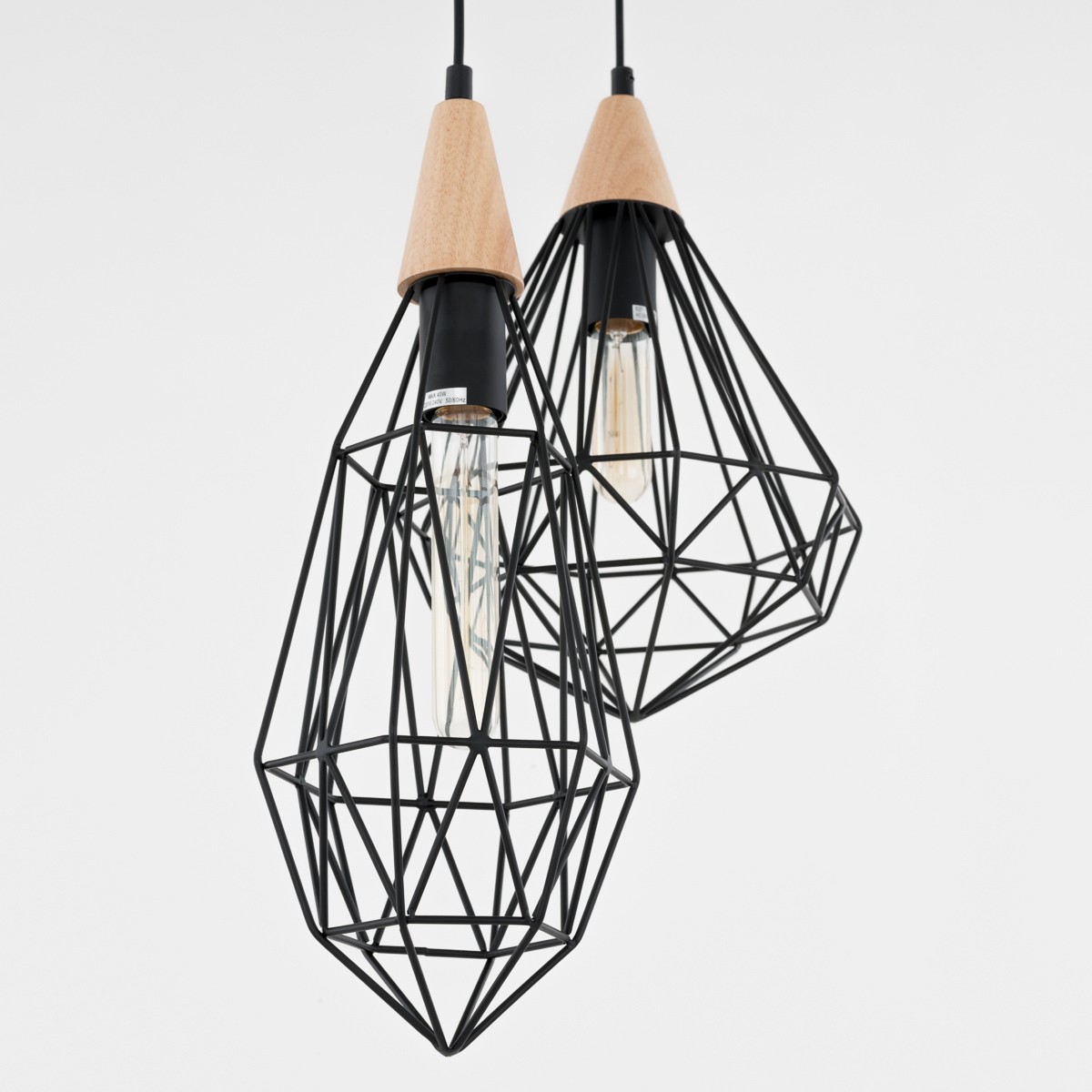 Die geometrischen Formen dieses Kronleuchters werden zu einer perfekten Ergänzung für ein modernes Interieur. Sein Körper aus hochwertigem Edelstahl ist elegant in schwarzer Farbe mit einem stilvollen Detail in Form eines Holzaufsatzes überzogen. Der Durchmesser des Kronleuchters beträgt 450 mm bei einer Gesamthöhe von bis zu 1200 mm.
