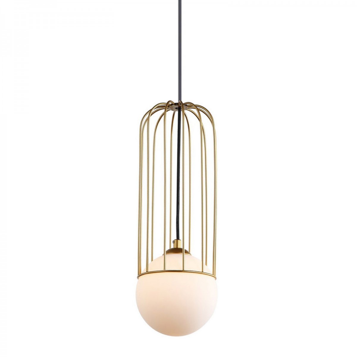 Der Korpus des Kronleuchters besteht aus einer Glaslampe, die den Lichtstrom angenehm in alle Richtungen verteilt und so für eine sanfte Beleuchtung des gesamten Raums sorgt. Darauf sitzt ein Metallkäfig wie eine Kochmütze, der den größten Teil der Größe des Kronleuchters ausmacht. Längliche Schlüssel sind aus Edelstahl Stahl in Gold Farbe.