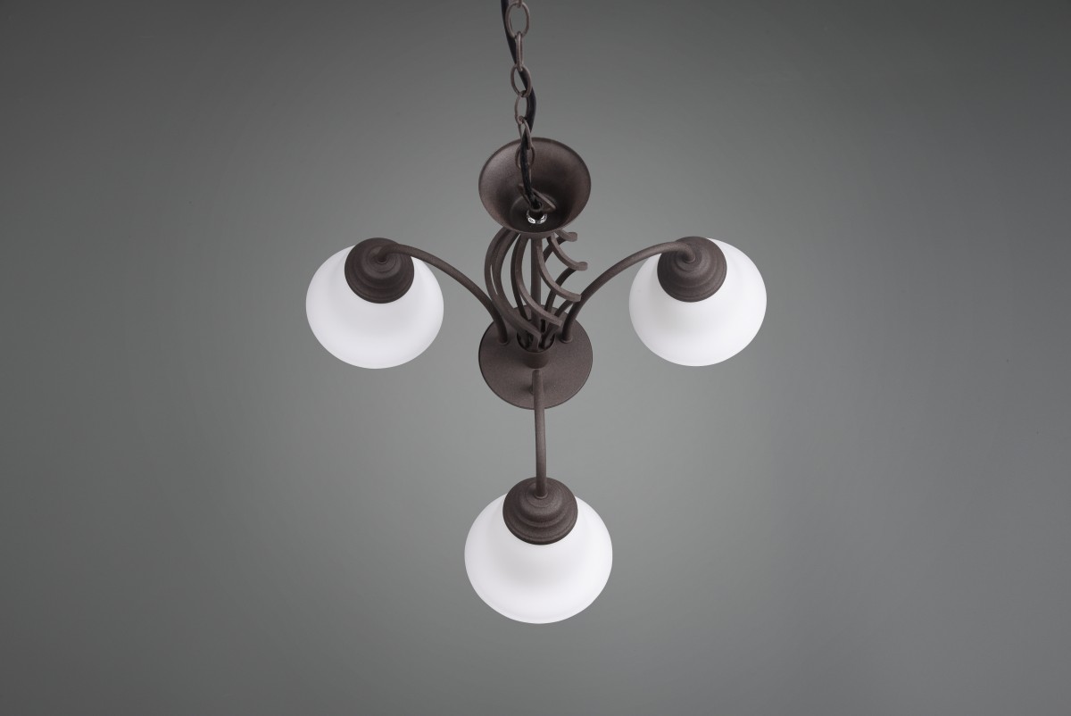 Wenn Sie nach einem rustikal aussehenden Hängeleuchter suchen, ist Trio 101000324 Rustica die richtige Wahl für Sie. Diese Leuchte eignet sich besonders für industrielle oder rustikale Innenräume, wie z. B. die Beleuchtung von Wohnzimmern oder Küchen. Der Korpus des Kronleuchters besteht aus rostfarbenem Metall, die Lampenschirme aus Glas.