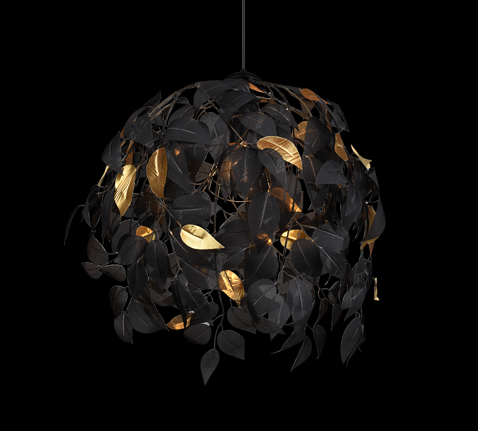 Diese dekorativen Blätter schaffen ein visuell ansprechendes Lichtobjekt, das jede Decke schmückt und Ihrem Interieur einen stilvollen Akzent verleiht. Die mattschwarze Konstruktion der Lampe lässt sich mühelos in jedes Interieur integrieren. Die Leuchte LEAVY ist die ideale Ergänzung für diejenigen, die ein außergewöhnliches Design für ihr Zuhause suchen.