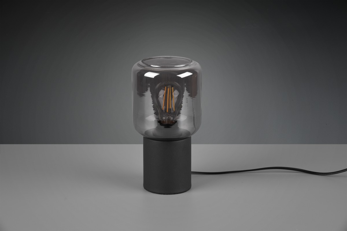 Trio-Tischlampe TR50591032 Nico wird eine angenehme Wiederbelebung moderner Innenräume sein. Diese Leuchte wird dank ihrer schlichten und eleganten Formen besonders Liebhaber des Minimalismus erfreuen. Sie eignet sich besonders gut für das Wohnzimmer, Schlafzimmer oder um andere dunkle Ecken der Räume zu beleuchten. Der Fuß der Leuchte besteht aus Metall in mattem Schwarz, der Diffusor besteht dann aus Rauchglas.