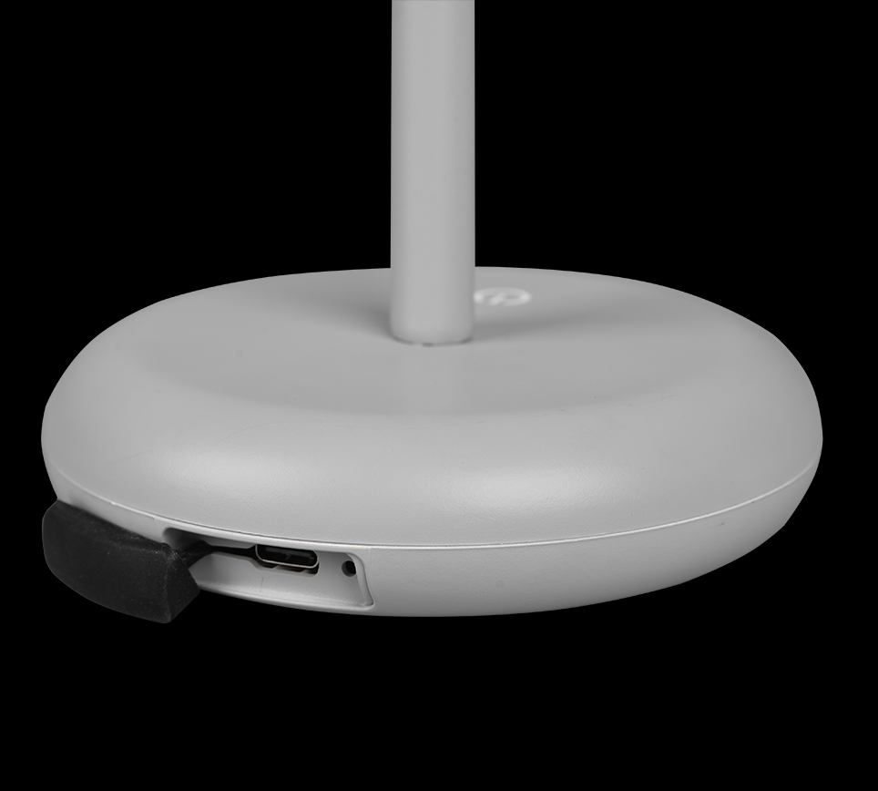 Die Lampe lässt sich einfach über USB-C aufladen und ist mit einem vierstufigen Touch-Dimmer ausgestattet, der es ermöglicht, die Lichtintensität individuell anzupassen und die gewünschte Atmosphäre zu schaffen. Die IP44-Klassifizierung schützt vor Spritzwasser, wodurch die Lampe auch ideal für den Außenbereich geeignet ist.