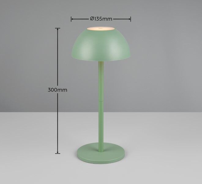 Mit der Touch-Steuerung können Sie bei Bedarf ganz einfach zwischen dendrei Helligkeitsstufen wechseln. Mit der Schutzart IP54 ist es resistent gegen Staub und Spritzwasser, was garantiert ist seine Verwendung auch draußen. Die minimalistische Pilzform und die grüne Farbe verleihen der Lampe ein dekoratives Aussehen, das in jedem Raum auffällt.