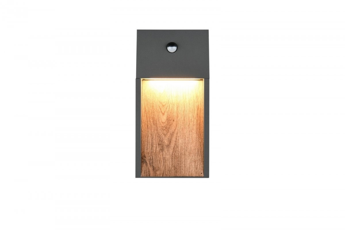 Die Leuchte mit IP44-Schutz ist äußerst vielseitig und auch für den Einsatz in Kellern oder Garagen geeignet. Die stilvolle Kombination aus Anthrazit und Holz sorgt für einen modernen Look und wertet Ihren Außenbereich optisch auf.